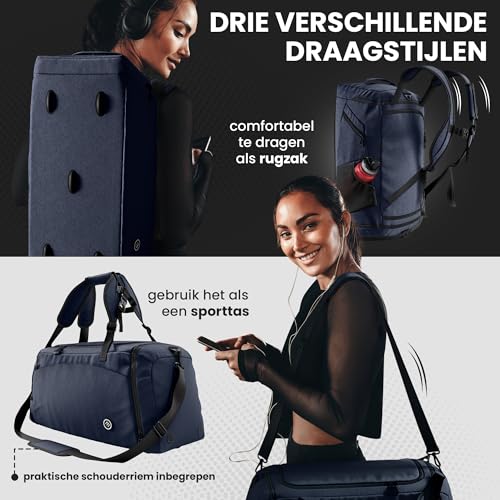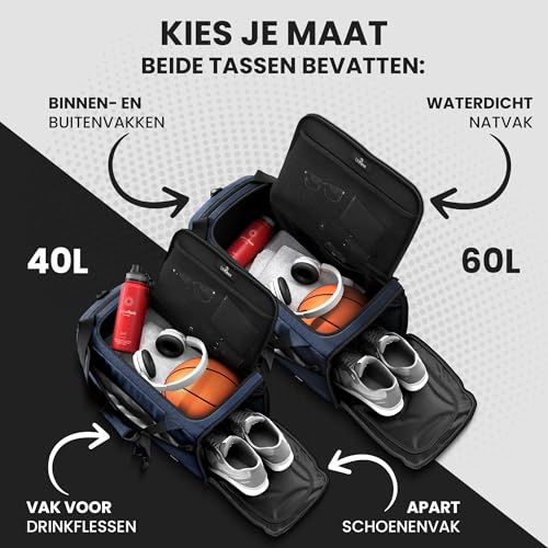 Sporttas Gymbag Reistas 40L / 60L | Trainingstas met Rugzak-Functie Schoenencompartiment Vak voor natte Kleding | Sportrugzak Fitness Tas Weekender Zwemtas Duffelbag Sportzak Fitnesszak Sportbag Heren