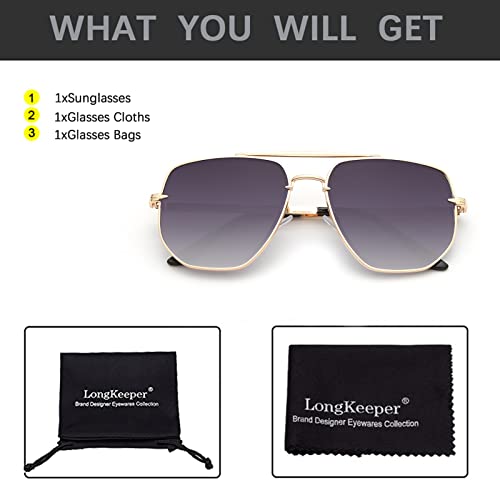 Long Keeper Grote Pilotenbril voor Mannen Vrouwen Vintage Stijl Bril met Metalen Frame UV Bescherming Dames Heren