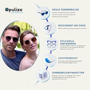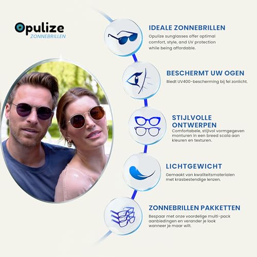 Kwaliteit en stijl: SOL zonnebrillen bieden ongelooflijke waarde en richten zich tegelijkertijd op kwaliteit. De iconische lichtgewicht draadframes geïnspireerd op de muziekcultuur van de jaren 60 maken deze opvallende retro zonnebril tot een designklassieker. ZOMERZON- Er bestaat niet zoiets als te veel zonnebrillen hebben. Zie er goed uit voor minder, met onze grote selectie stijlvol ontworpen ongelooflijk voordelige frames. Opulize waar de focus op jou ligt! Blokkeert UVA- en UVB-stralen. Comfortabele pasvorm: onze stijlvolle Opulize SOL zonnebril met krasbestendige glazen ziet er op bijna elke gezichtsvorm geweldig uit. Een lichtgewicht draadframe met kunststof eindpunten zorgt voor een comfortabele pasvorm voor de hele dag gebruik. Geschikt voor mannen en vrouwen van alle leeftijden. KLEUR: Goud met bruine punten. Bruine tint lens. Opulize vilt Pouch inbegrepen.